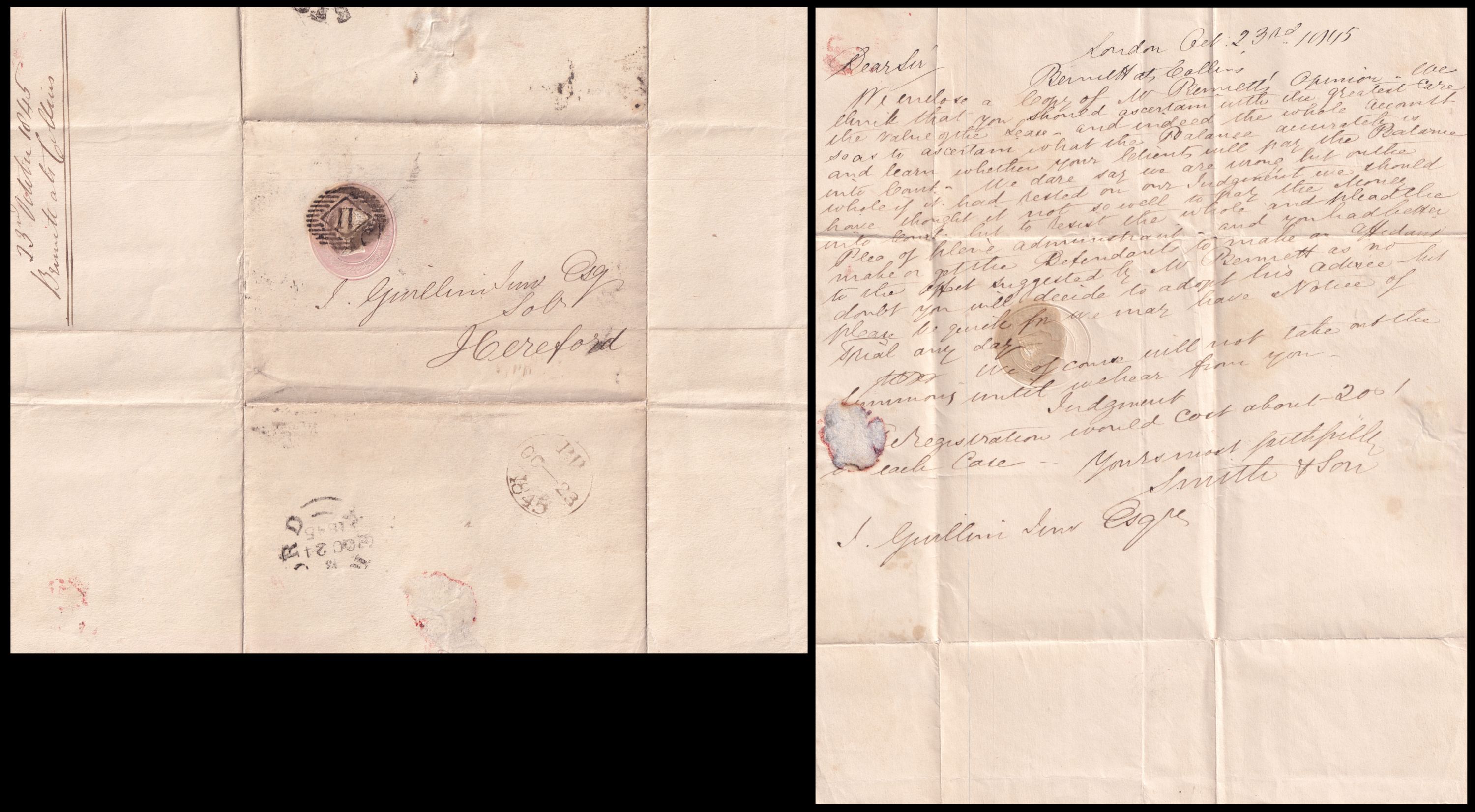 the letter was posted from Leominster to Bristol (9d rate) in 1838.