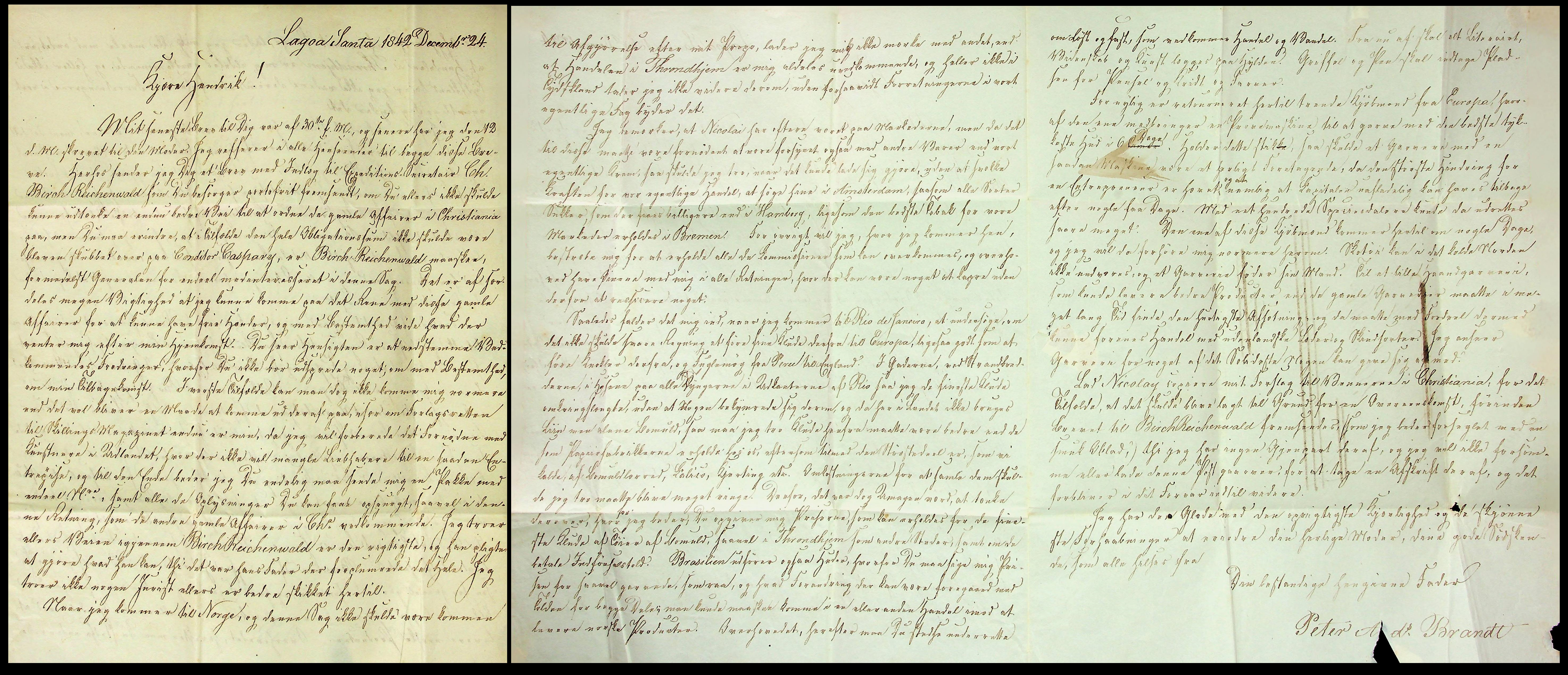 | A letter dated December 24, 1842, written by Peter Andreas Brandt in Lagoa Santa, Brazil (transcript and trnslation are here). |