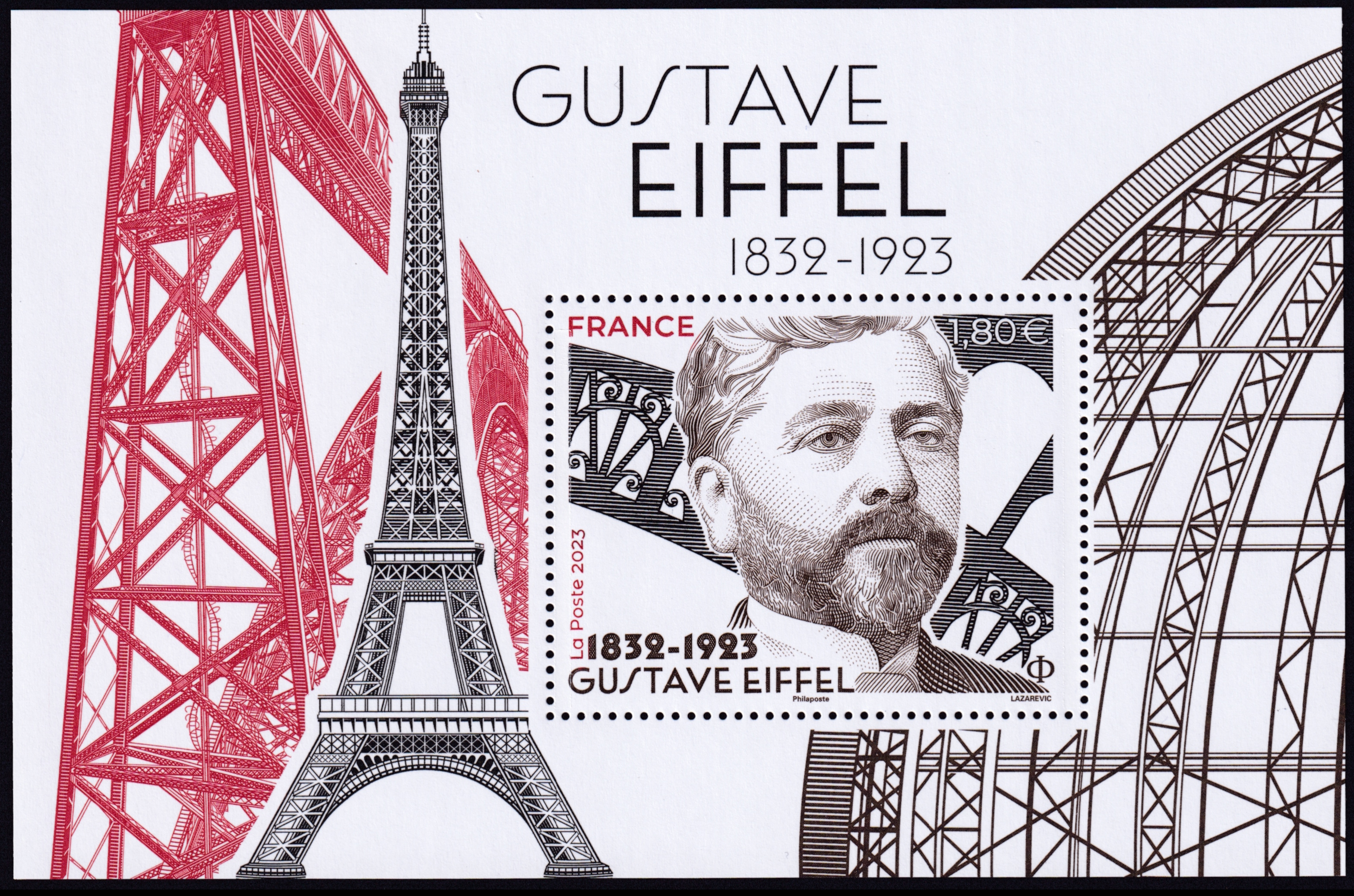 | Gustave Eifel and his tower on stamp of France 2023, MiNr.: Bl. 586, Scott: 6411 |