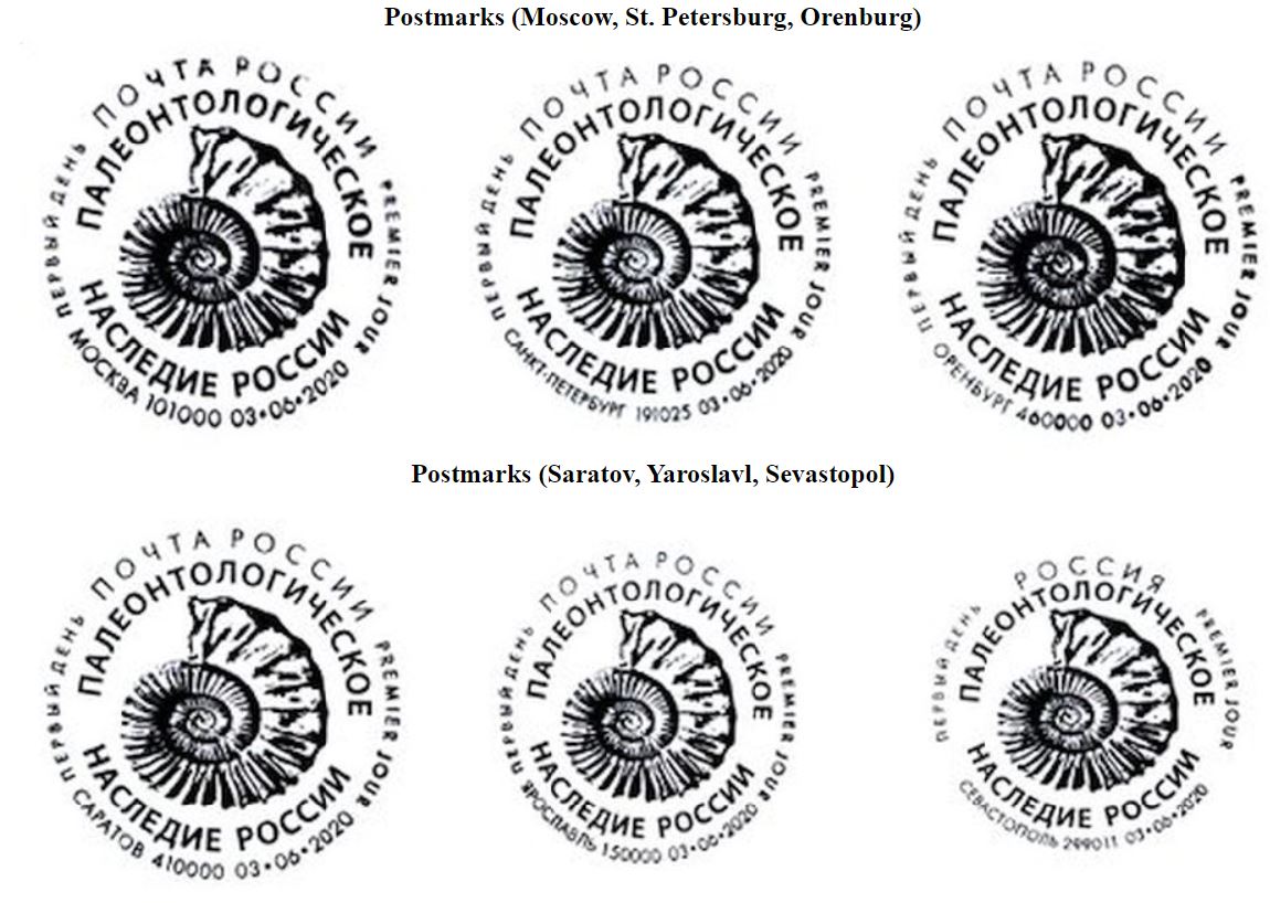 Saratov, Yaroslavl, Sevastopol. [1] According to "MARKA" company, who is responsible for production of stamps and other philatelic materials in Russia, the cities for cancellation were selected according to the areas where the remains of animals depicted on stamps are found. The cancellation of every issued stamp is carried out in Moscow, regardless of the issue topic. In St. Petersburg, as in a city of federal significance, therefore most cancellations are also carried out in the city. The approval of cities for cancellation, except for Moscow, is also associated with applications from the main post offices of cities.