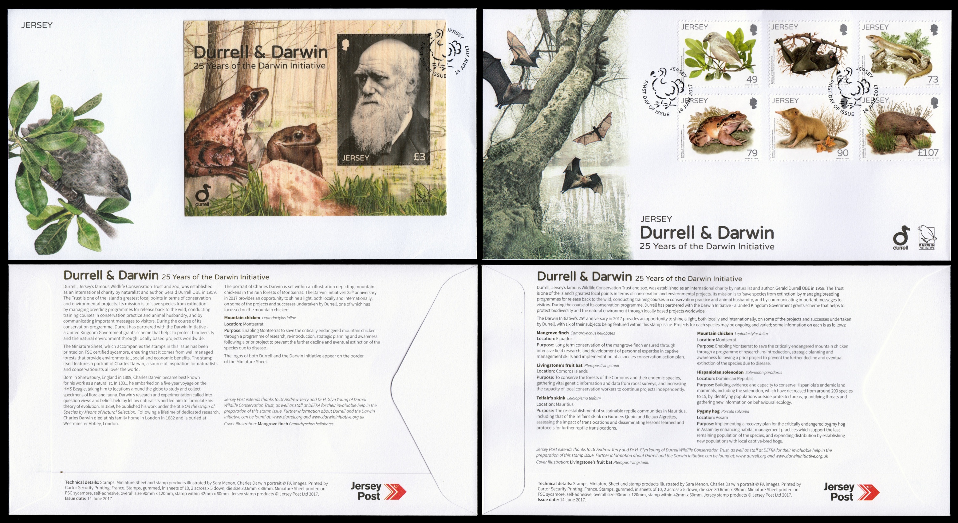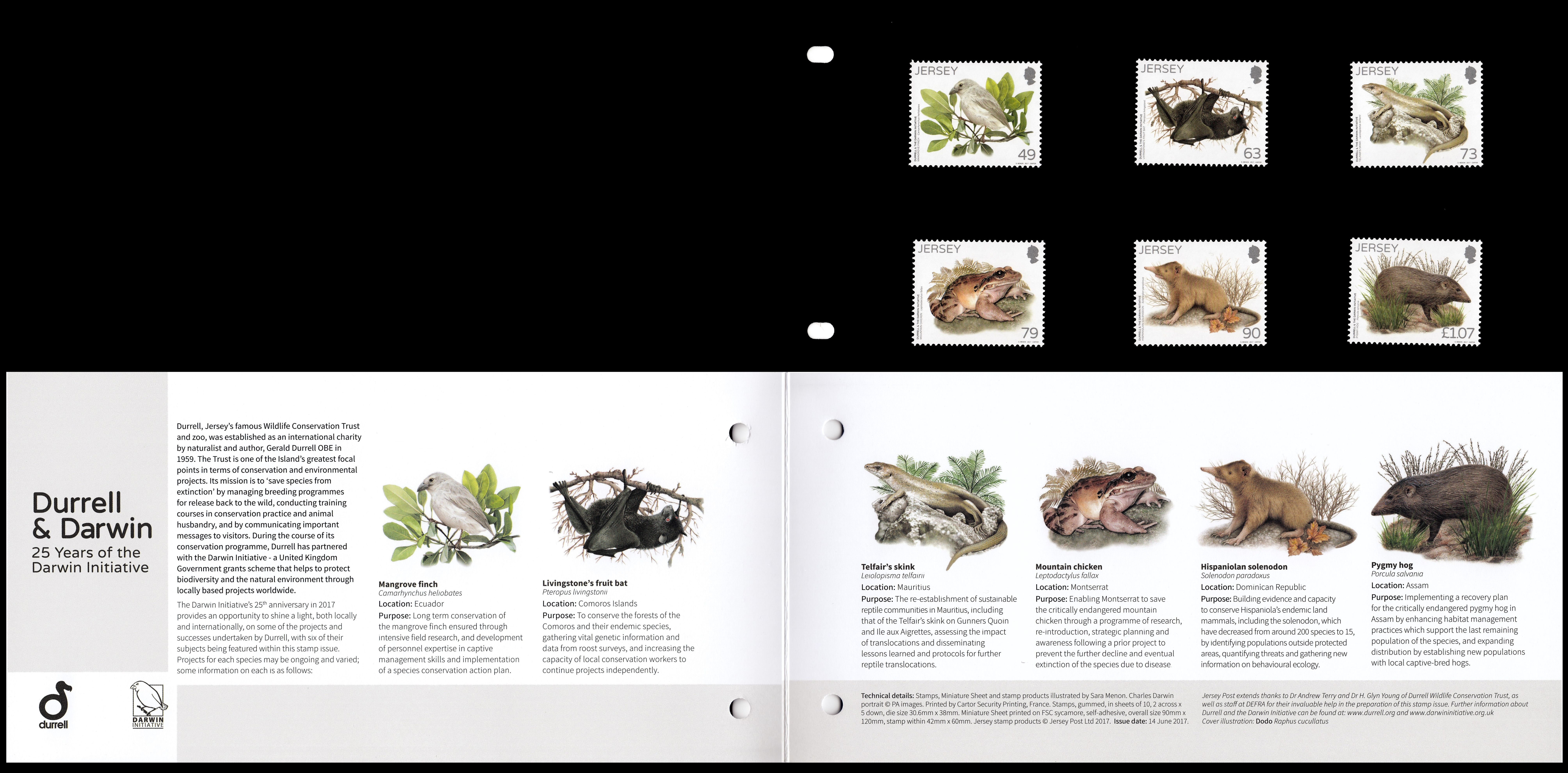 undertaken by Durrell, with six of their subjects being featured within this stamp issue.