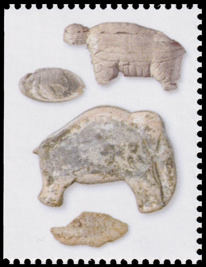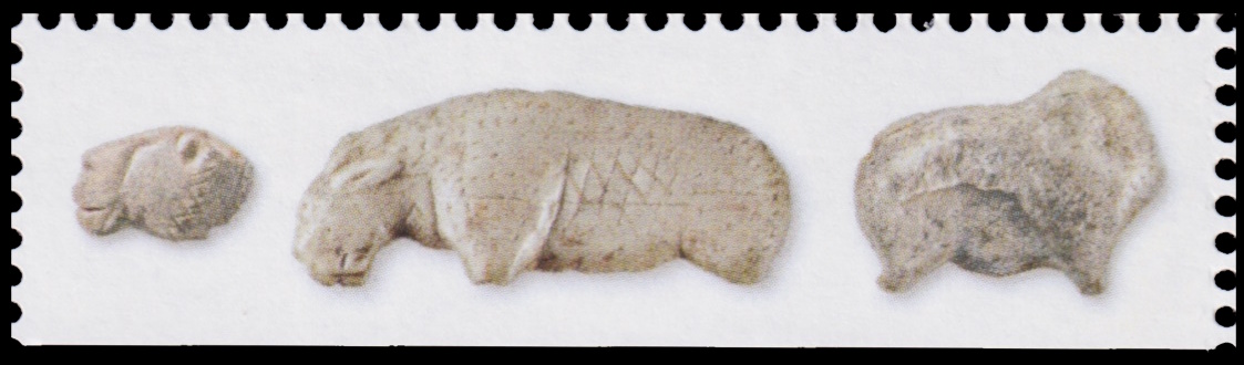 Many figures created by the "Ice Age" humans were depicted on the stamp and on selvages.