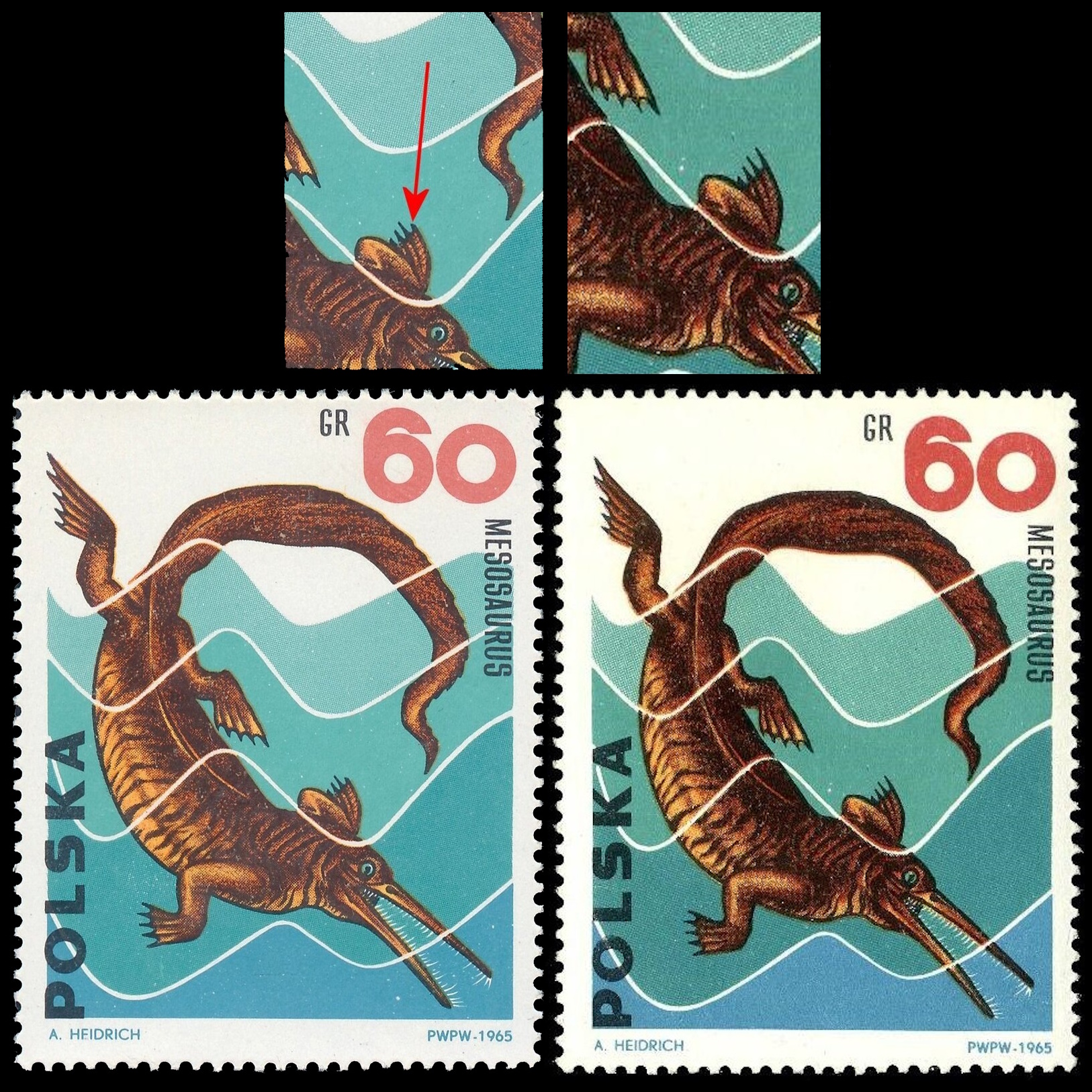 Mesosaurus represented on the 60 gr stamp lived in the Permian