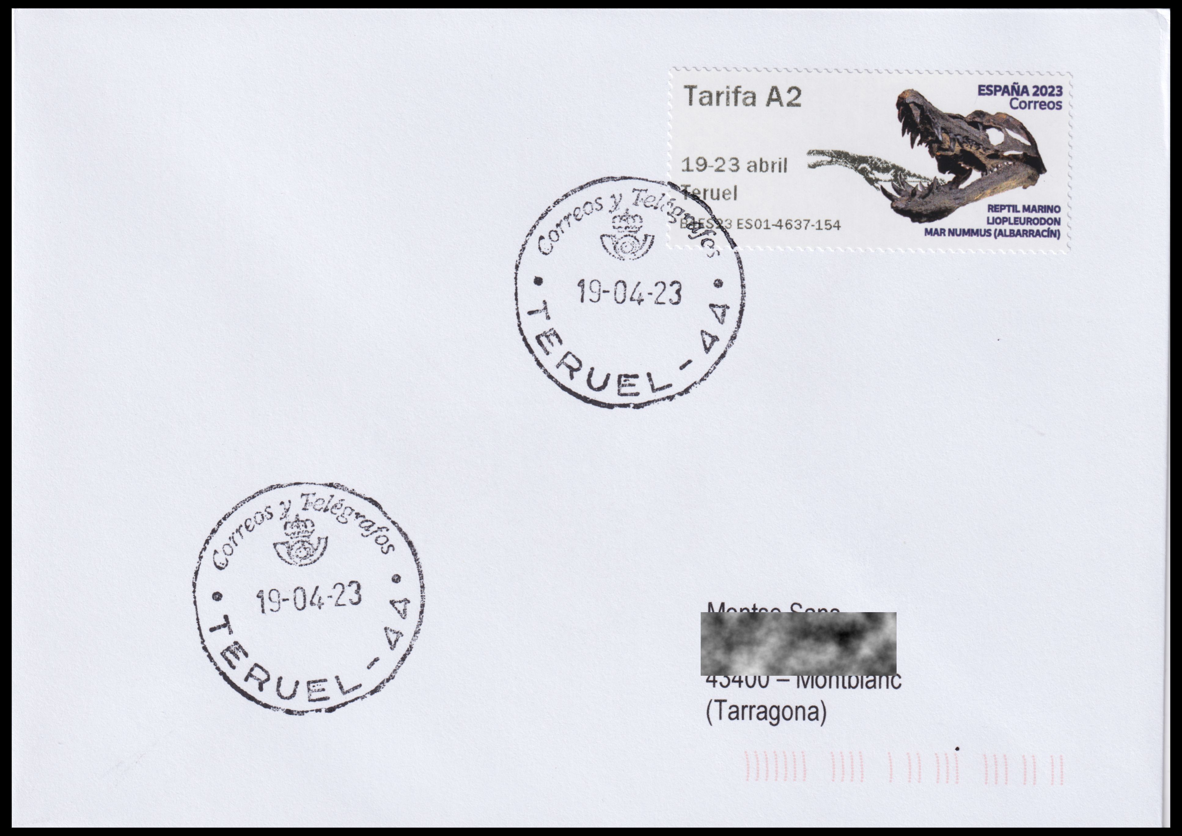 Teruel ATM stamp (variation 2) on domestic letter, up to 50g rate, Spain 2023.