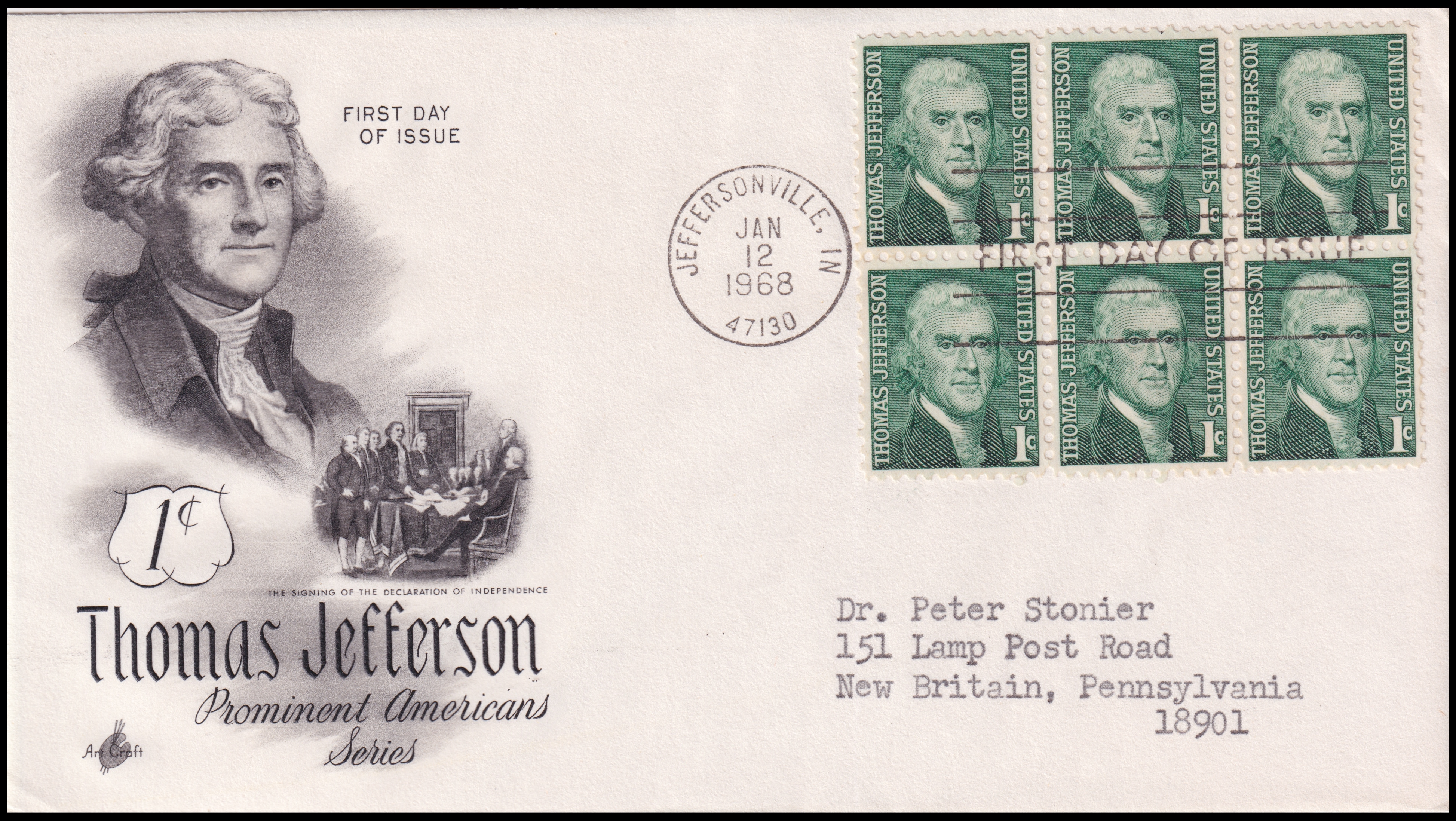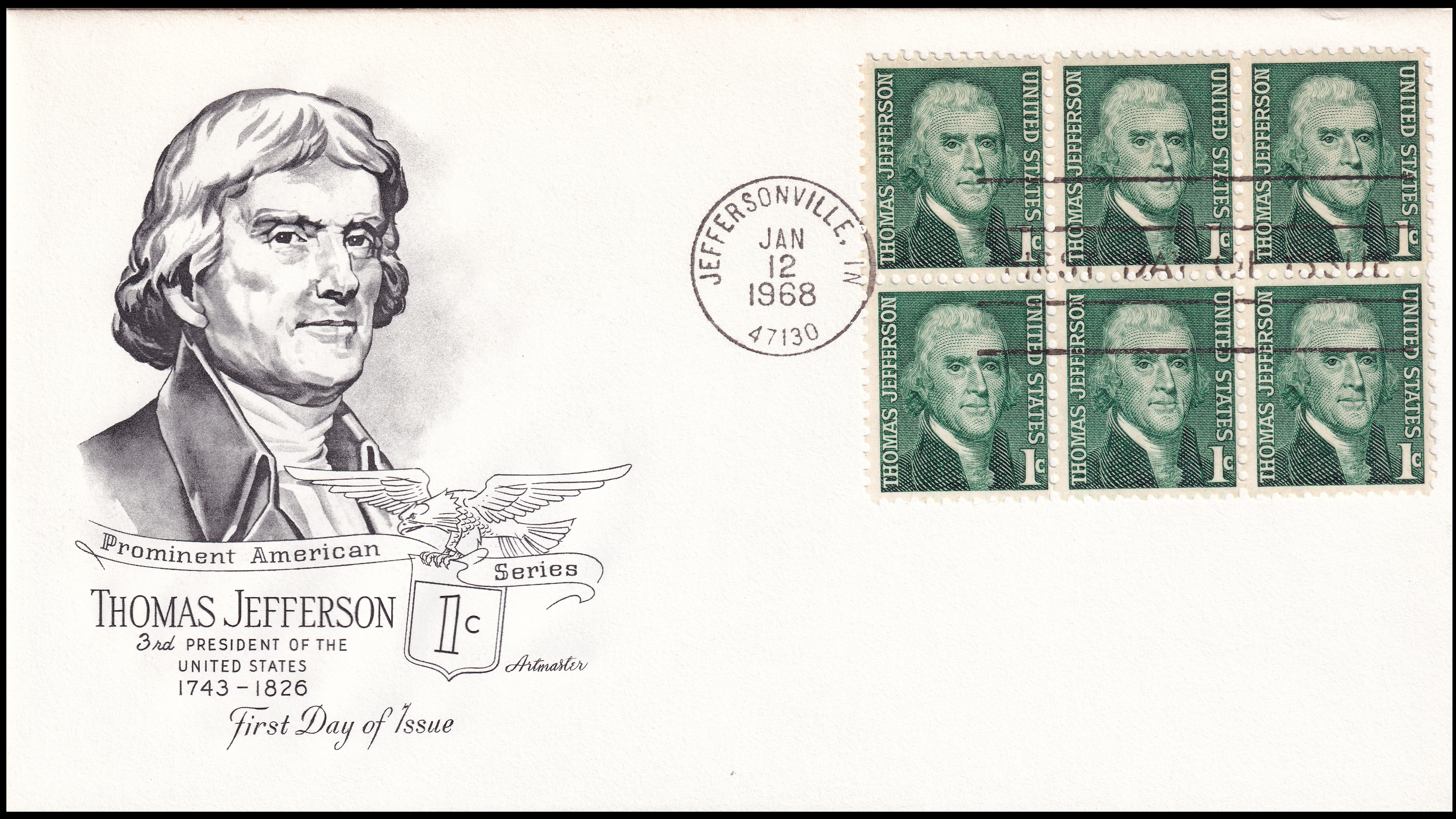 President Thomas Jefferson on FDC of USA 1968.