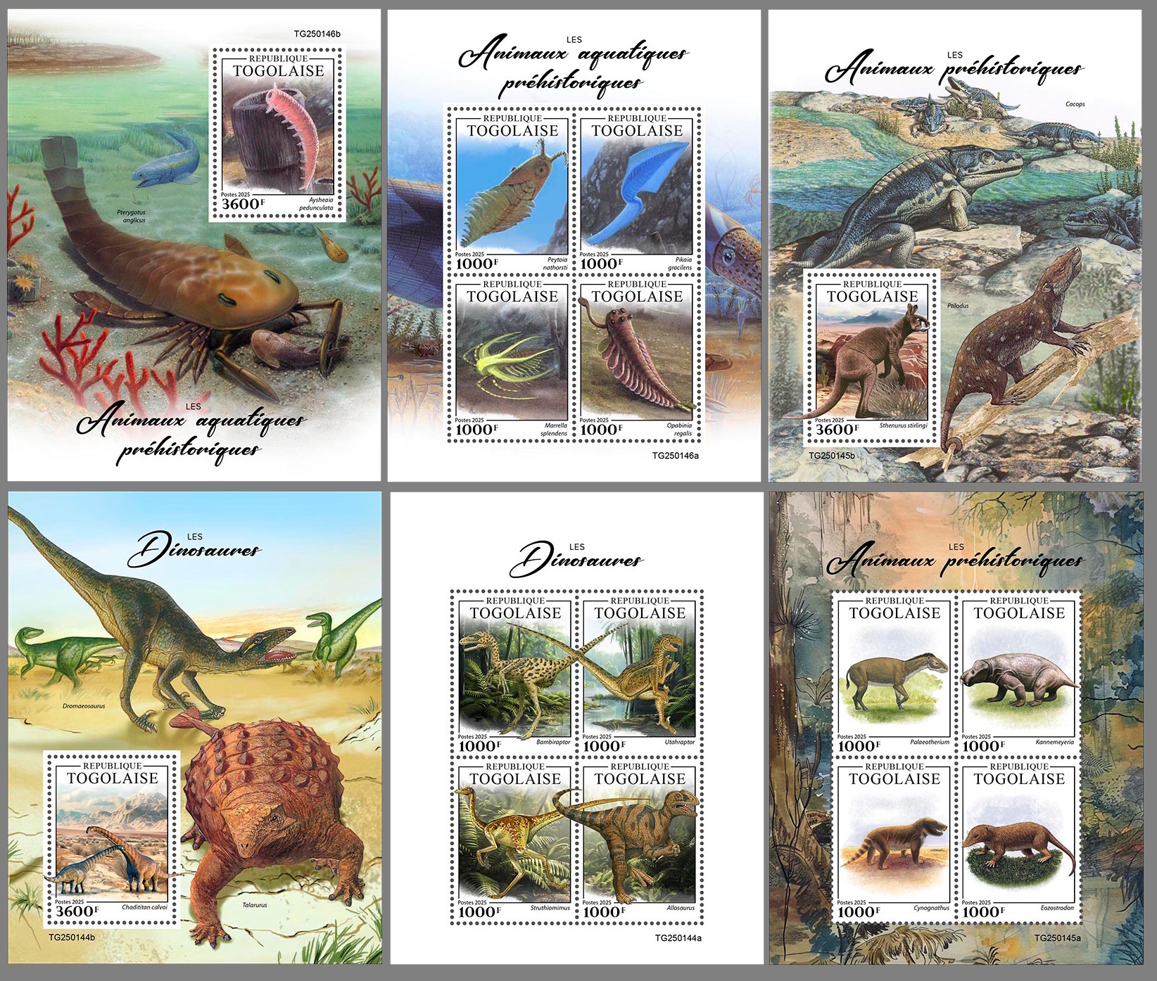 Official stamps directly related to Paleontology: dinosaurs and other prehistoric animals, fossils, paleontologists