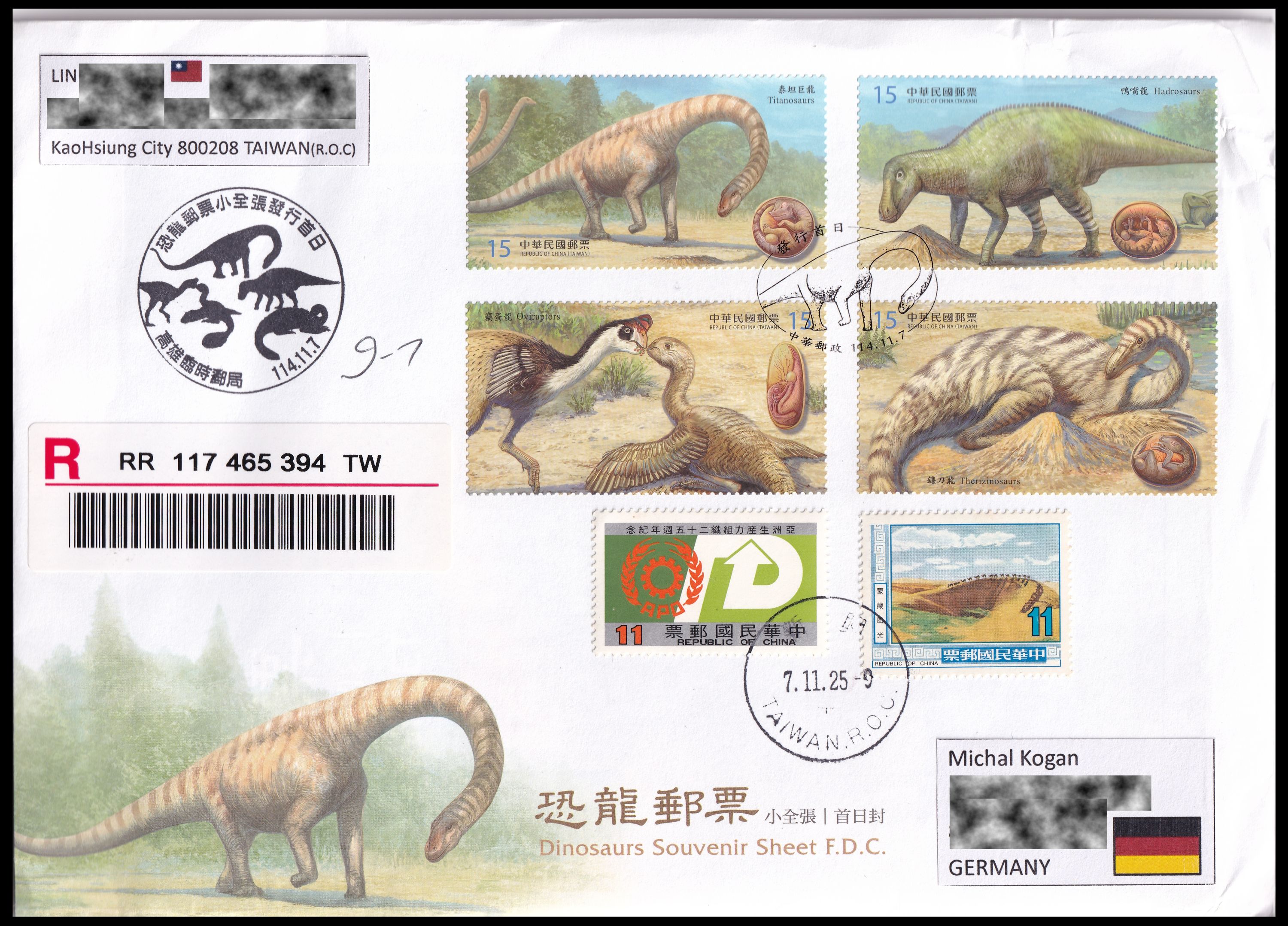 available at the Kaohsiung Post Office for mail sent on the day.