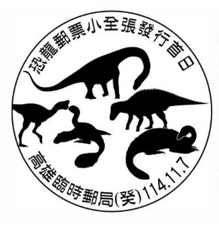 - The round postmark featuring five dinosaurs was the temporary First Day of Issue postmark,