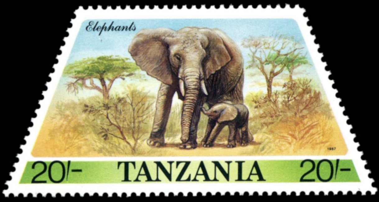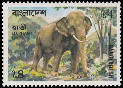 Woolly mammoth on stamp of Switzerland 2024 MiNr.: 2970, Scott: 1989. | Mastodon on stamp of USA 1996 MiNr.: 2737, Scott: 3079. | African elephant on stamp of Tanzania 1988 MiNr.: 428, Scott: 388. | Asian elephant on stamp of Bangladesh 1977 MiNr.: 98, Scott: 134. |