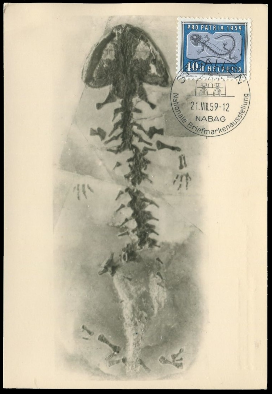 Miocene salamander Andrias scheuchzeri on Maxi Card of Switzerland 1959 |
