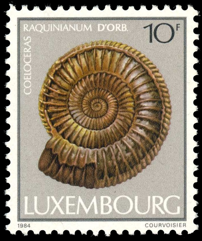 Ammonite on postage stamp of Luxembourg 1984,