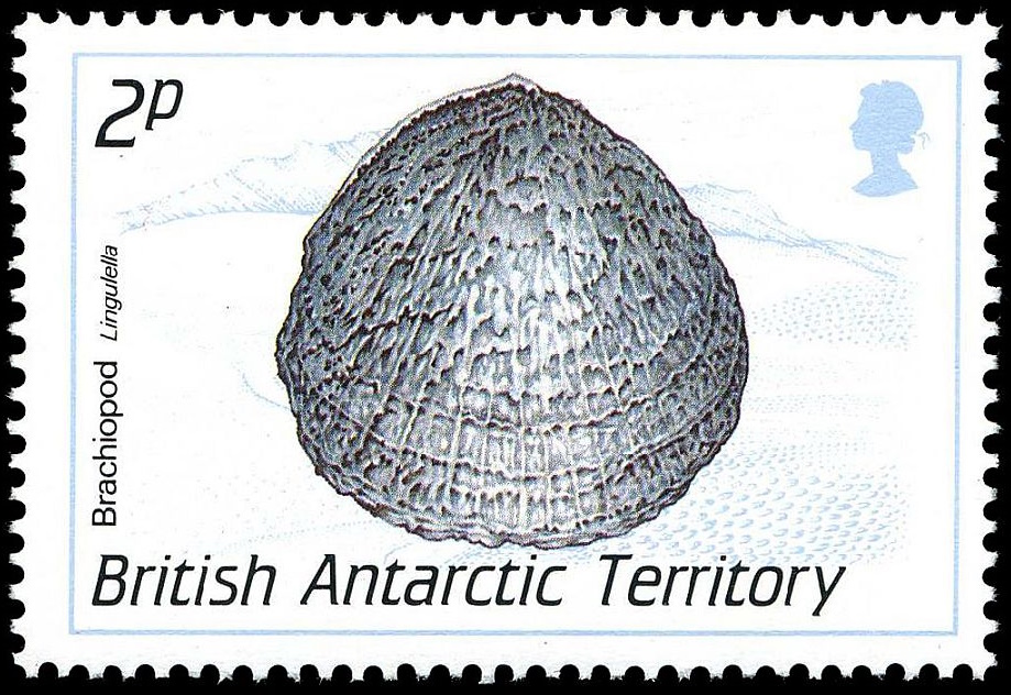 Brachiopod on postage stamp of the British Antarctic Territory 1990,