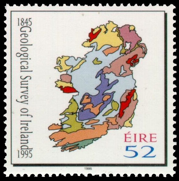 Geological map of Ireland on stamp from 1995, MiNr.: 908, Scott: 978. |