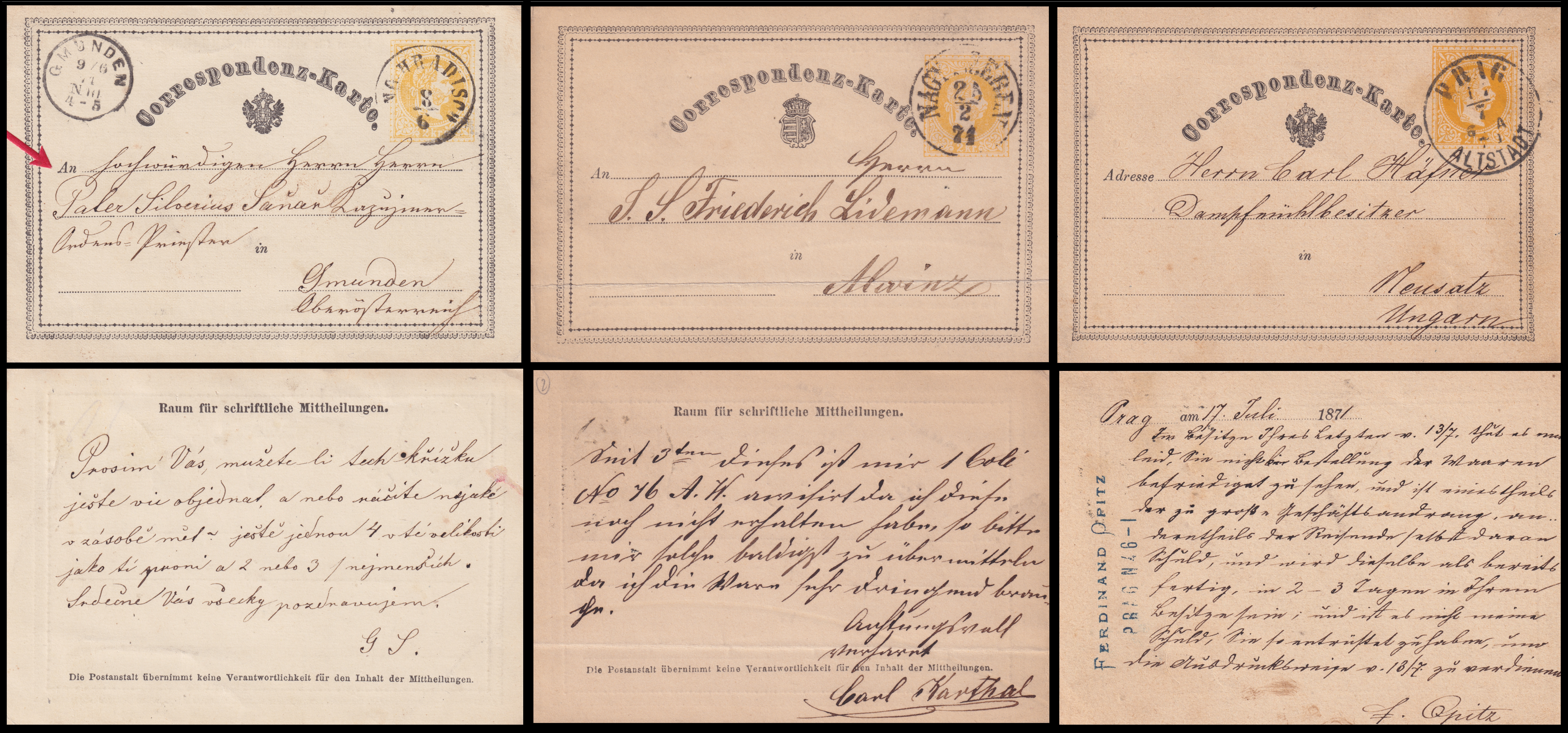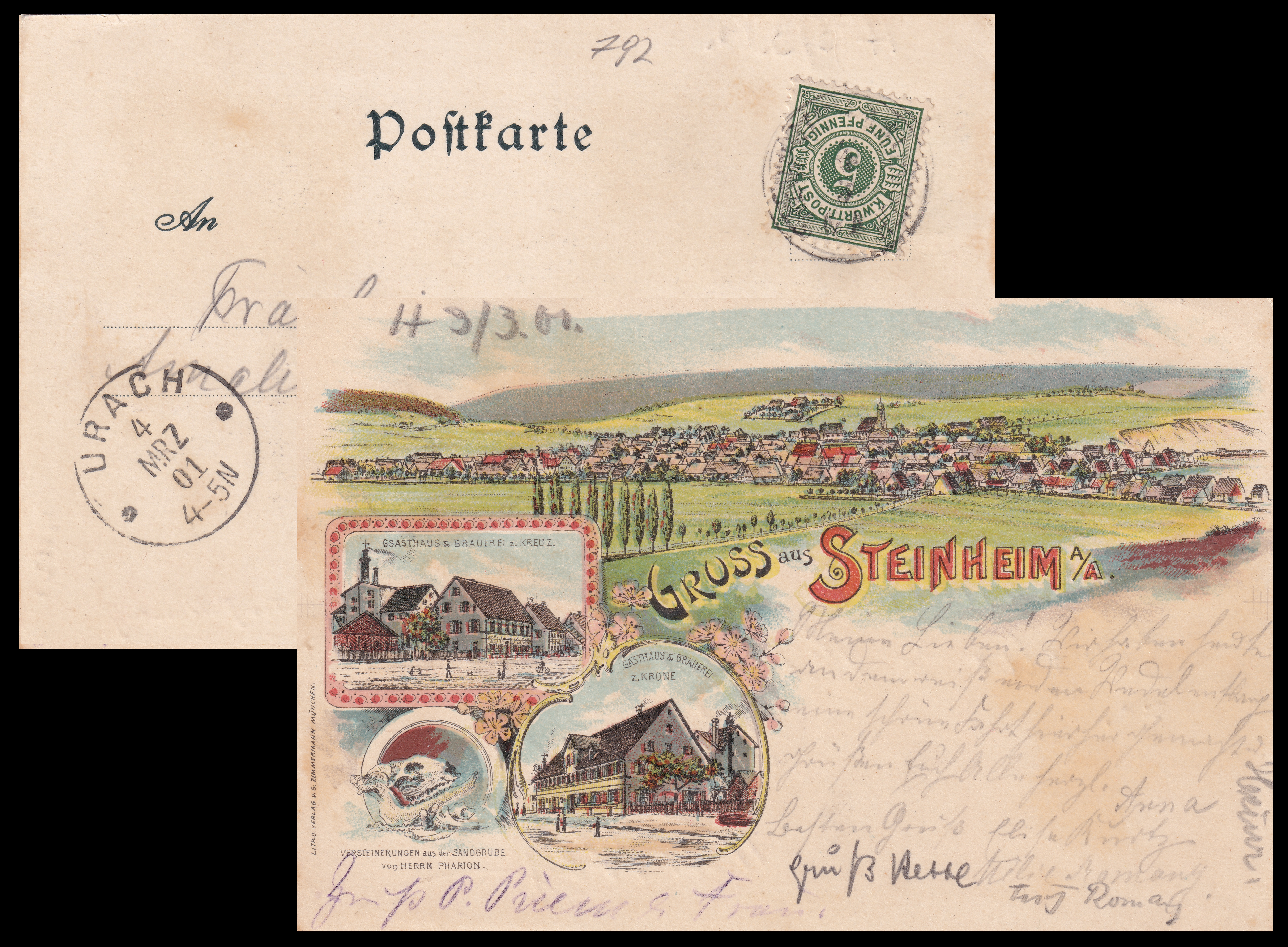 German "Gruss Aus" (or "Greetings from") postcards from the end of the 19th century, posted between in 1901 and 1903. |