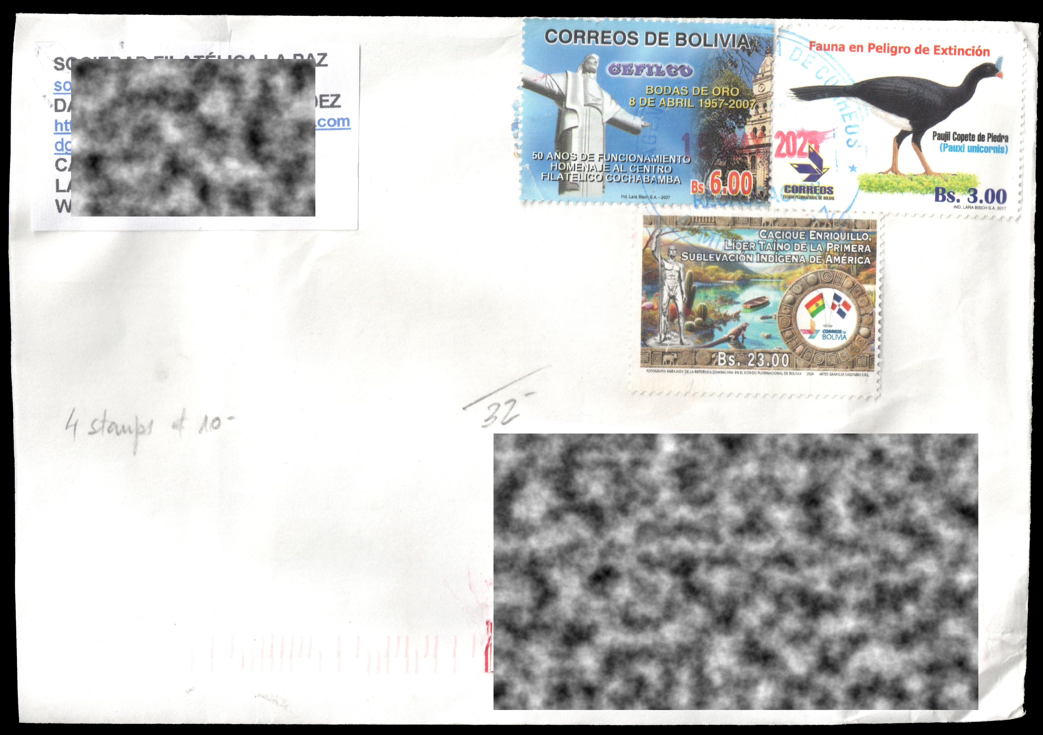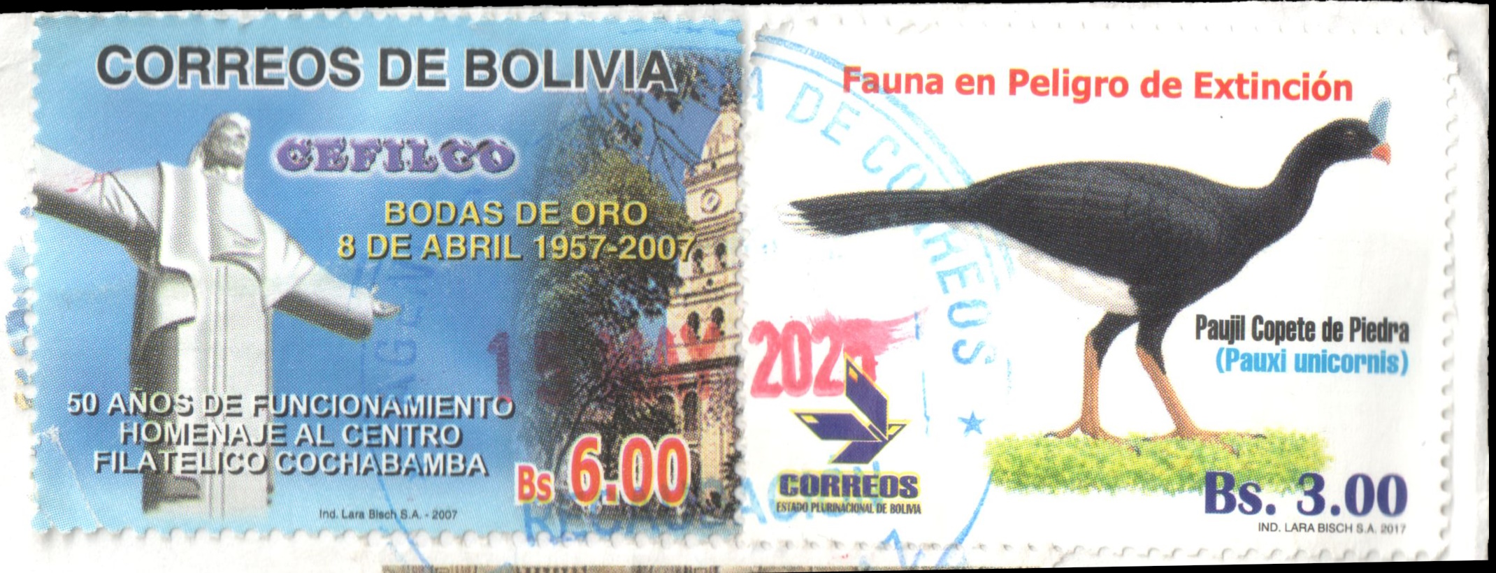 Stamps from Bolivia are marked as Correos de Bolivia.