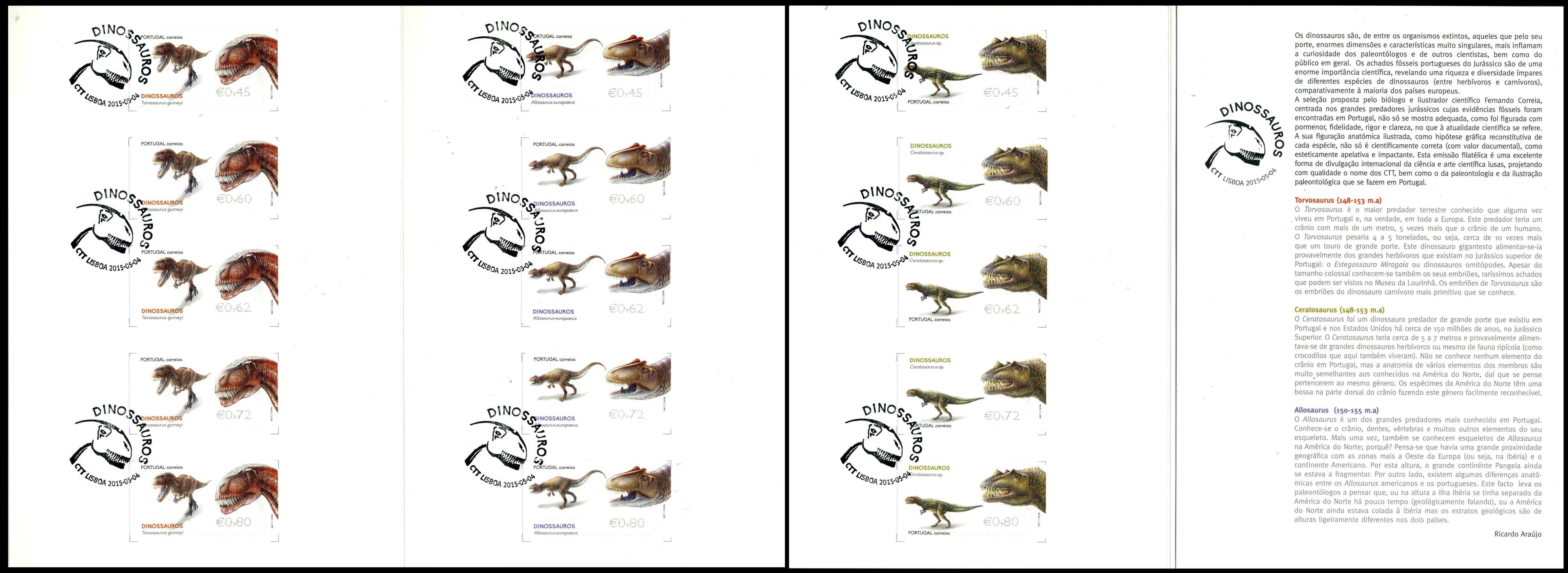 The stamps were illustrated by Fernando Correia who has been one of the paleontological