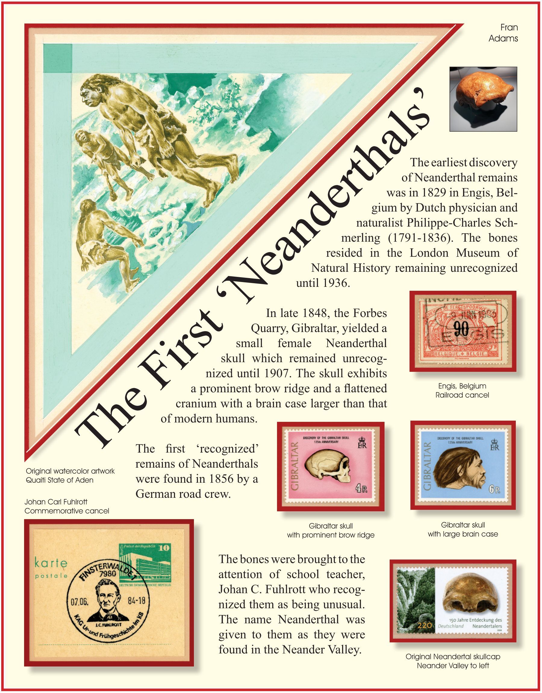 Catalogue with philatelic artworks about the topic „Evolution of mankind and philately“, by Peter Brandhuber | Der Neandertaler im Wandel der Zeit, by Mr. Peter Brandhuber | Evolution of mankind and Philately, by Dr. John Hawks and Peter Brandhuber | Fossile Menschen, by Mr. Rudolf Hofer |