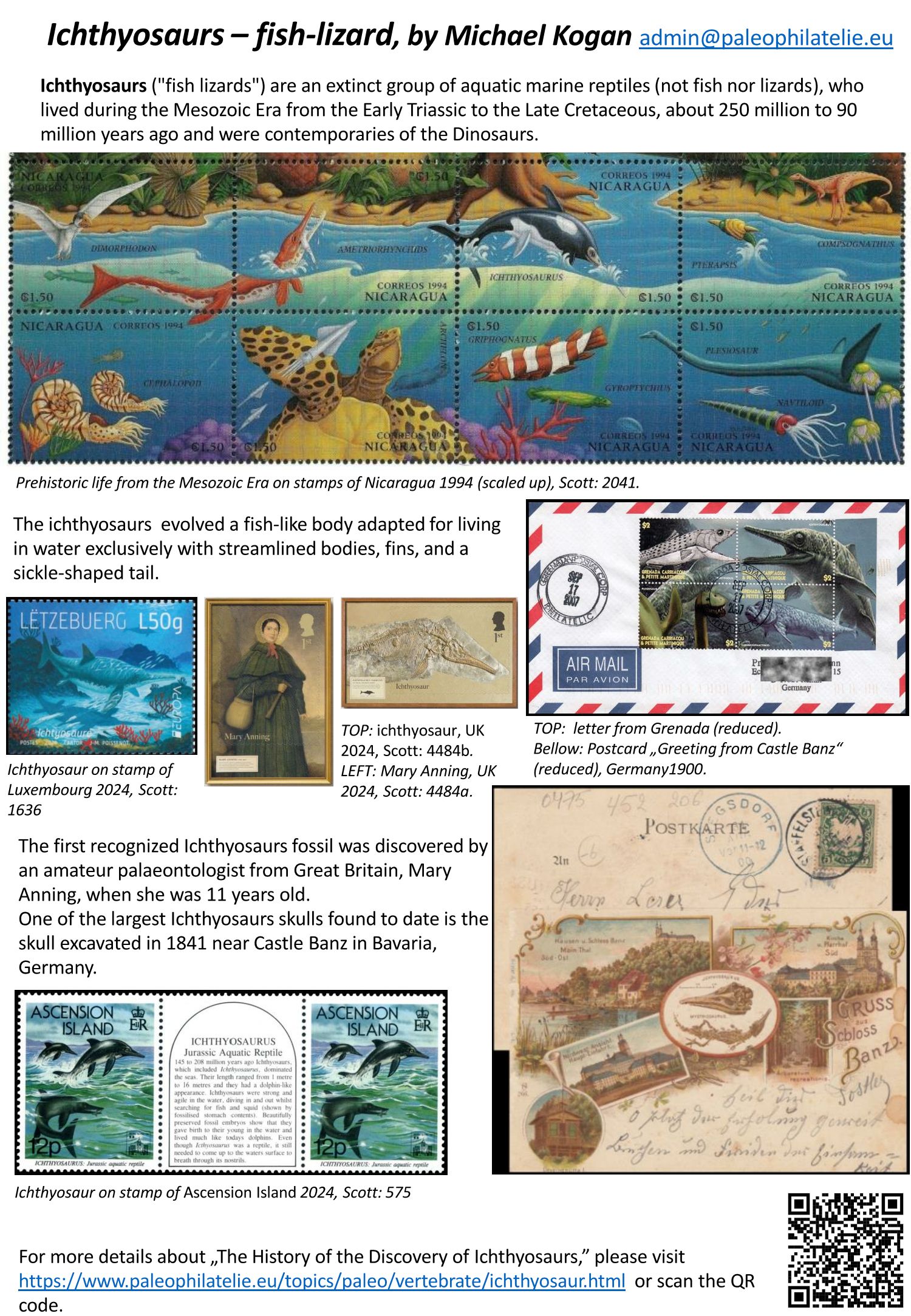 "The World of Prehistoric Fishes and their Reflection in Philately", by Hans Ulrich Ernst, Oliver Hampe. Published in 2018. Preview of some pages is here. Amazon: USA, UK, DE |