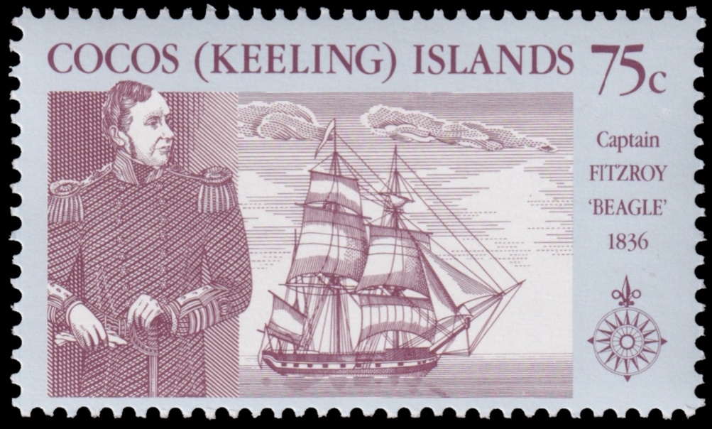 There is only one stamp set where the captain Robert FitzRoy was depicted together with Charles Darwin -