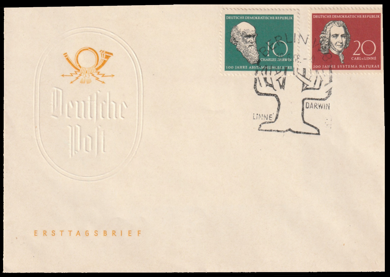 In 1958 - 1959 only a few socialist European countries issued stamps to commemorate 150th anniversary of Charles Darwin' birth