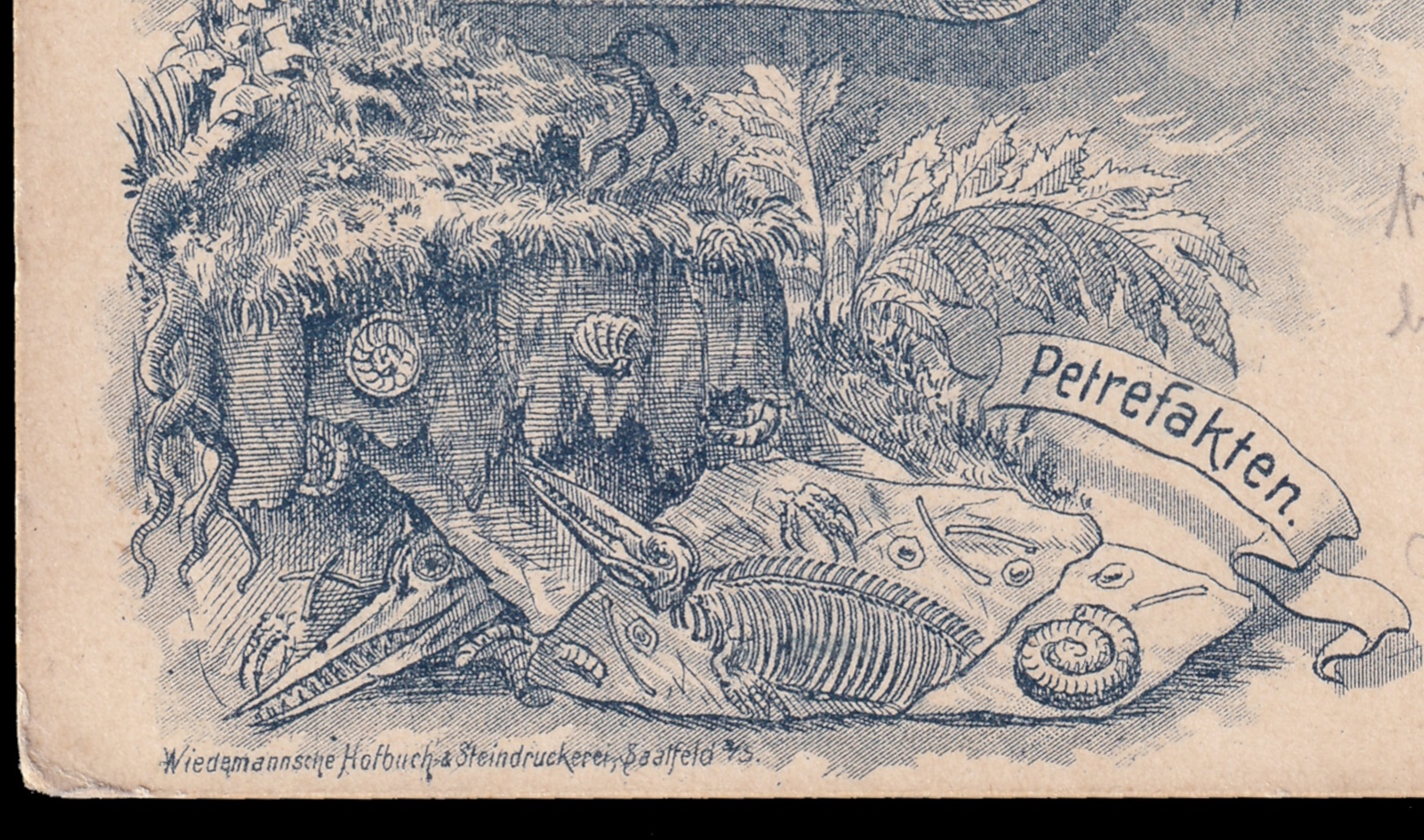 | Fossils from collection of Castle Banz's museum on cachet of Bavarian postcard from 1900. |