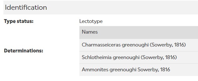 now called Charmasseiceras greenoughi and sent me the link to the NHM UK Data Portal (see above).