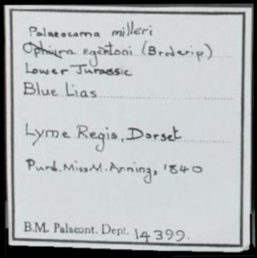 The label attached to one of the brittle stars, in NHM UK, formerly