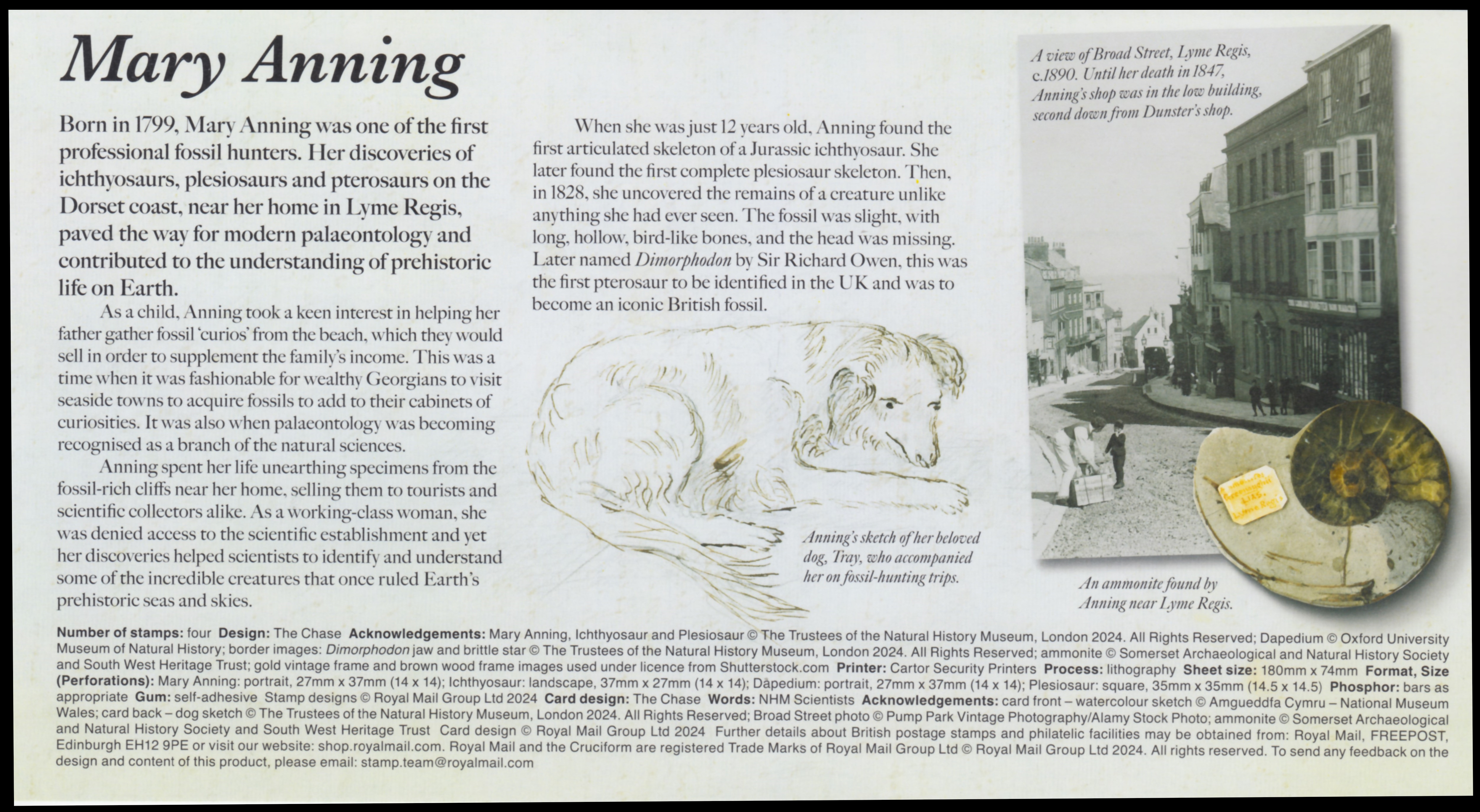 This article is about the Mini-Sheet with self-adhesive stamps of Mary Anning