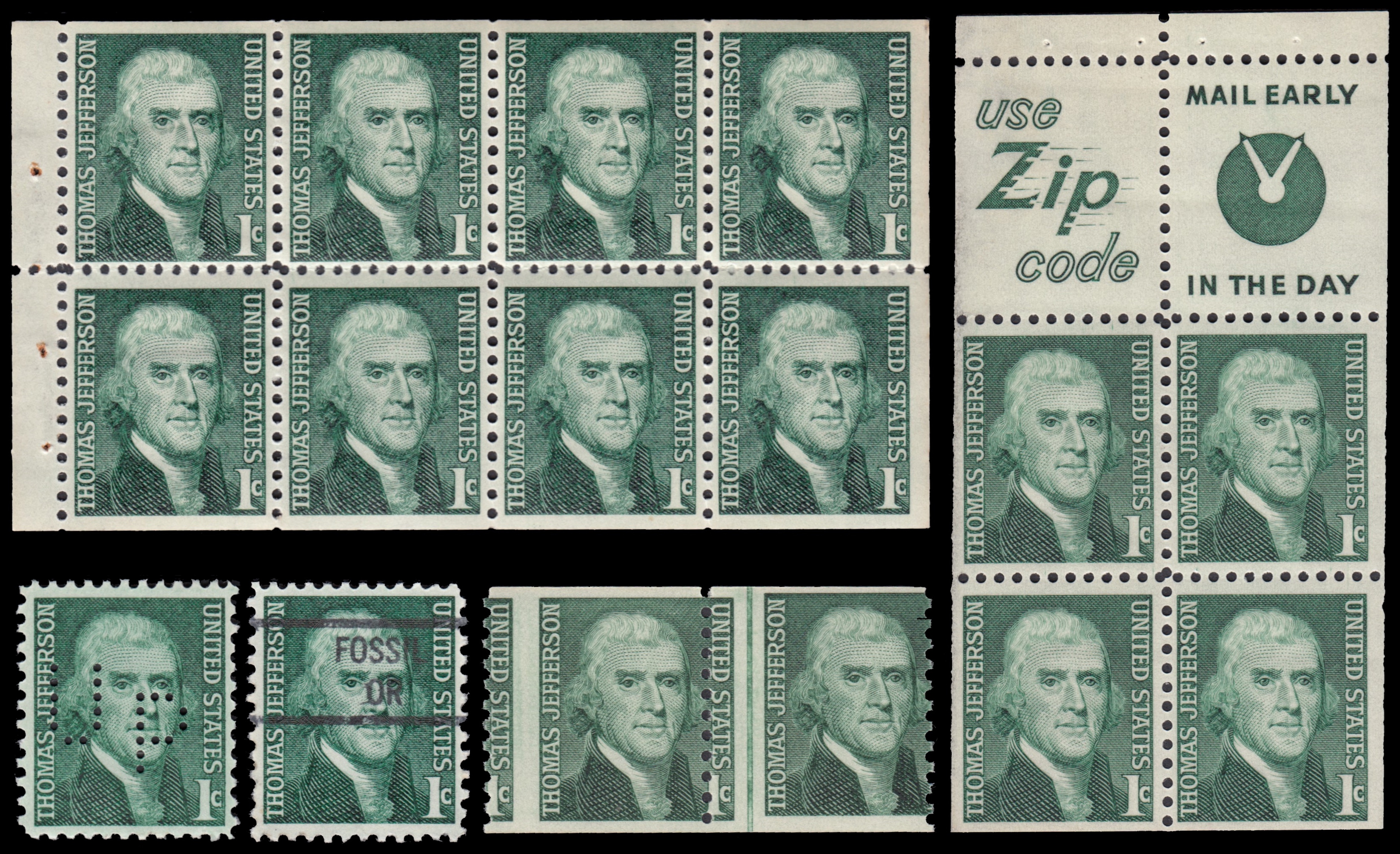 Variants of Thomas Jeffersons stamp of USA 1968.
