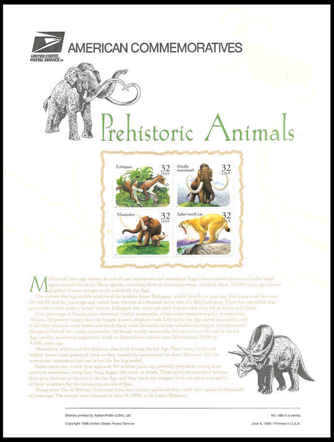 th, 1996, the United States Post Office issued its second set of prehistoric animal stamps.