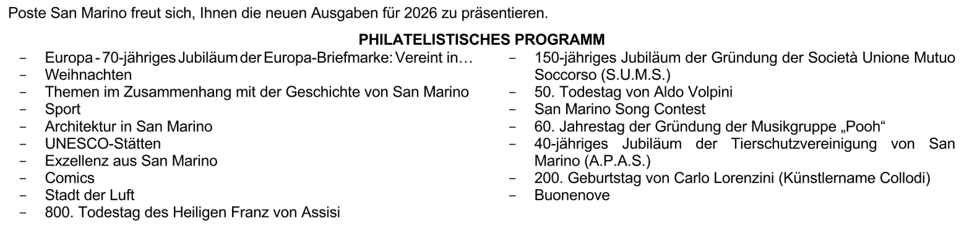 | Click on this icon to see stamps issue program. "*" sign outdated plans. "-" sign partial stamp program "N/A" not available – the particular postal authority doesn’t publish a stamp program. |